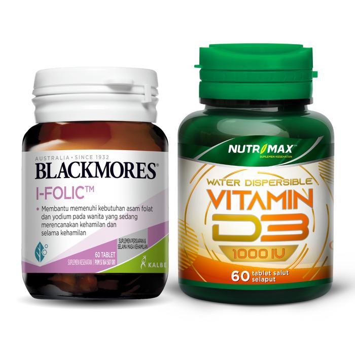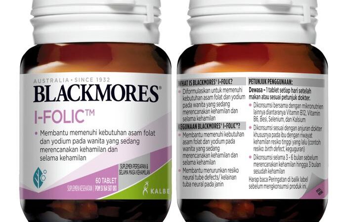 | Blackmores I Folic (60 Tablet) | Suplemen khusus dengan kombinasi Asam Folat dan Yodium untuk membantu mencegah risiko cacat tabung saraf pada janin dan mendukung perkembangan otak serta fungsi tiroid yang sehat. | Asam Folat 500 mcg, Yodium 150 mcg | 1 kapsul sehari, sesudah makan. |