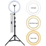 | Ring Light LED | Diameter 26cm dengan cahaya LED yang terang dan merata, menghasilkan sorotan lembut tanpa bayangan keras untuk hasil yang profesional. |