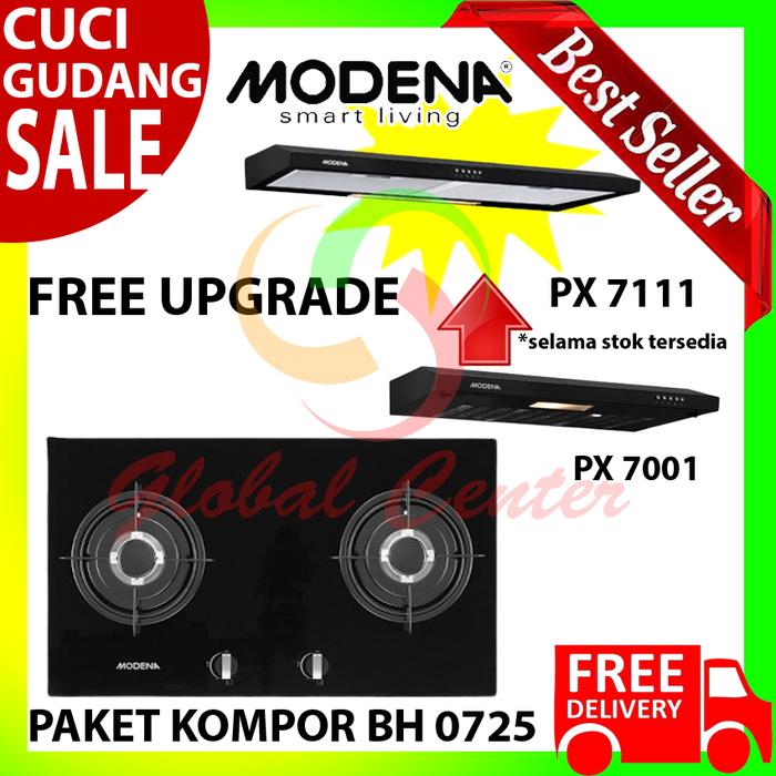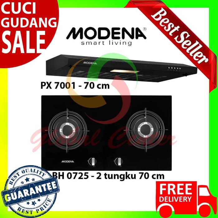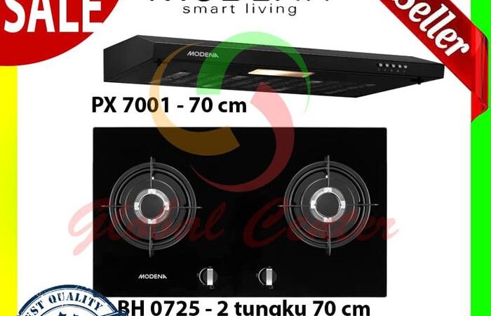 | Garis Besar Paket | Kompor tanam 2 tungku + cooker hood slim, asli Modena dengan garansi resmi 1 tahun. |