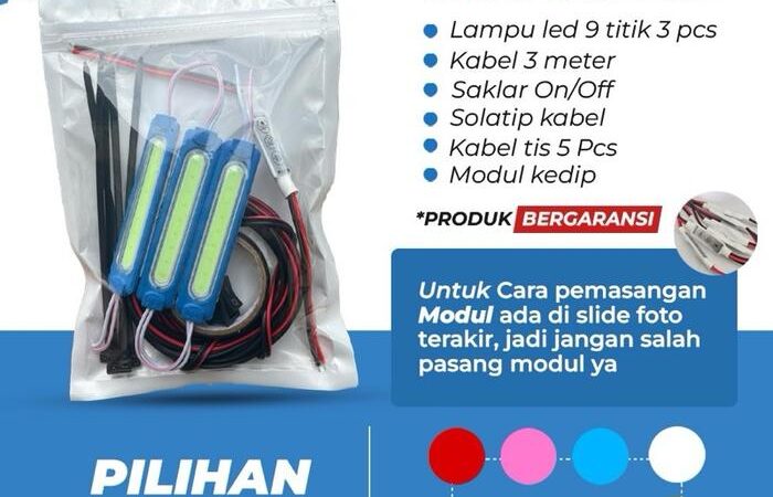 Dengan modul, Anda bisa mengatur lampu menjadi berkedip, strobo, atau fade-in sesuai keinginan. Produk ini bergaransi resmi selama 1 bulan. Pastikan untuk membaca panduan pemasangan yang tersedia di keranjang kuning untuk menghindari kesalahan instalasi.