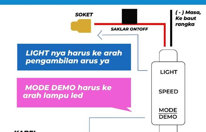 - Modul: Perangkat tambahan untuk mengontrol pola cahaya LED, seperti kedip, strobo, atau fade-in.