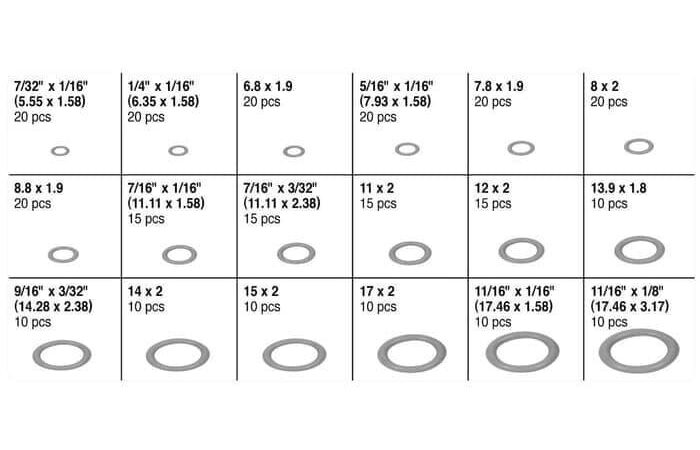 | Paket A | 225 pcs | 3x1mm hingga 22x2mm (18 ukuran) | Perbaikan rumah, alat listrik, bantalan |