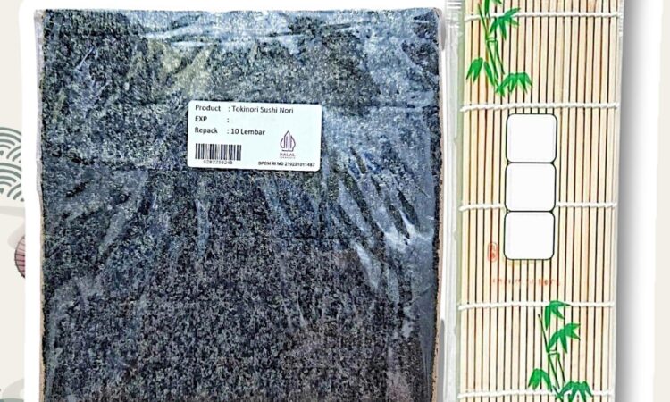 | Tokinori Sushi Nori | 10 lembar nori ukuran 21 cm x 19 cm. | Produksi dalam negeri, HALAL bersertifikat MUI, tekstur renyah, dan aroma laut yang autentik. |
