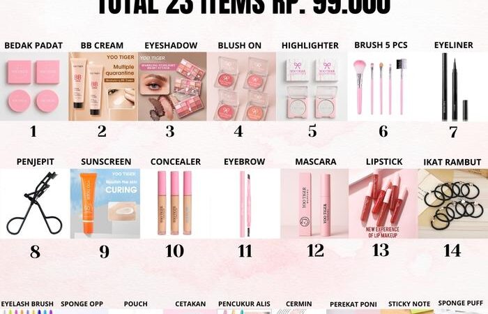 Dapatkan koleksi makeup lengkap dengan 23 item premium untuk tampilan flawless! Paket ini dirancang untuk memenuhi semua kebutuhan riasan harian maupun spesial Anda.