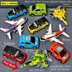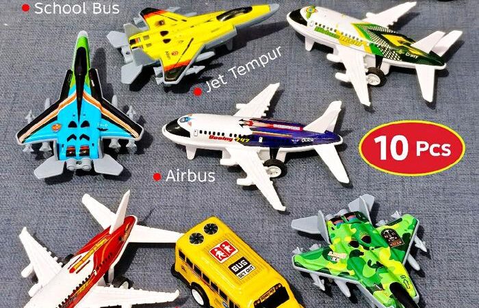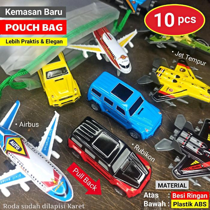 Dapatkan koleksi 10 miniatur kendaraan berkualitas tinggi dengan sistem pullback! Setiap paket berisi variasi menarik seperti Pesawat Airbus, Jet Tempur, Mobil Jeep Rubicon, School Bus, dan EV Car Wuling. Mainan ini dirancang khusus untuk anak usia 2 tahun ke atas dengan desain yang detail dan warna cerah.