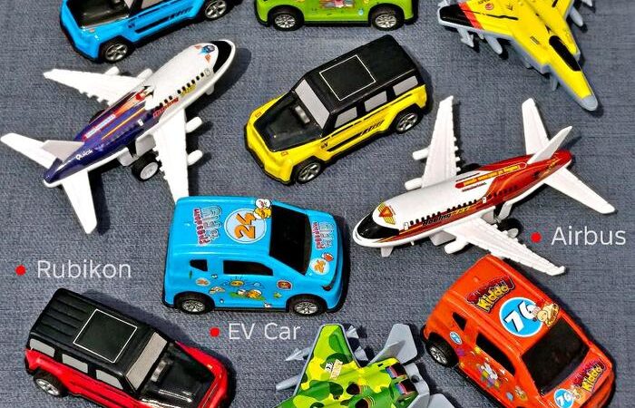 | Dimensi (perkiraan) | Airbus: 9x9x4 cm, Jet Tempur: 9.5×6.5×3 cm, Jeep Rubicon: 7×3.5×2.5 cm, School Bus: 7x3x3 cm. |