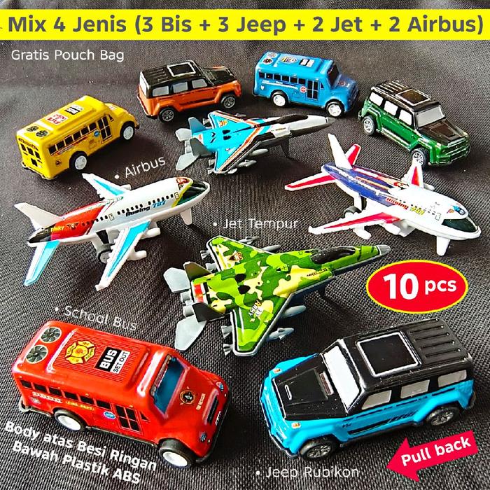 | Paket Mix 3 Bus + 3 Jeep + 2 Jet + 2 Airbus | 3 Bus, 3 Jeep, 2 Jet, 2 Airbus |