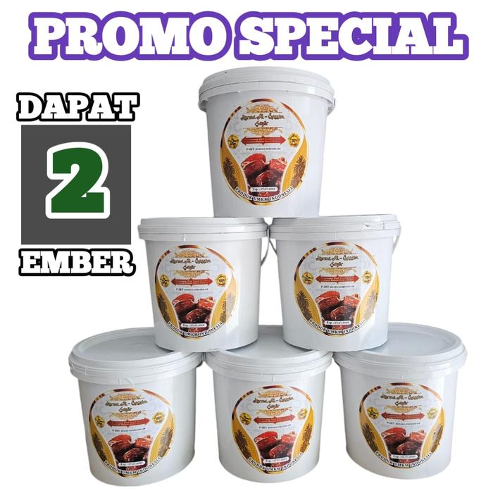 | Kualitas Premium | Kurma pilihan kualitas terbaik dari varietas Sayer asal Al Qassim, dikemas dalam dua ember praktis. |