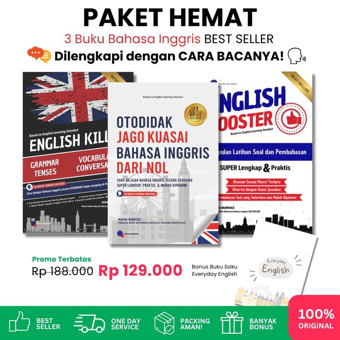Siap menguasai Bahasa Inggris dengan cepat dan mudah? Paket 3 buku bestseller ini dirancang untuk pembelajaran otodidak yang efektif, dilengkapi dengan latihan, trik praktis, dan pembahasan mendalam. Cocok untuk pemula hingga yang ingin meningkatkan skill bahasa Inggris secara mandiri!