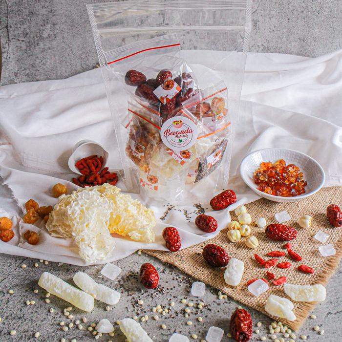 - Peach Gum: Getah pohon persik yang mengeras, dikenal kaya akan collagen alami dan serat.