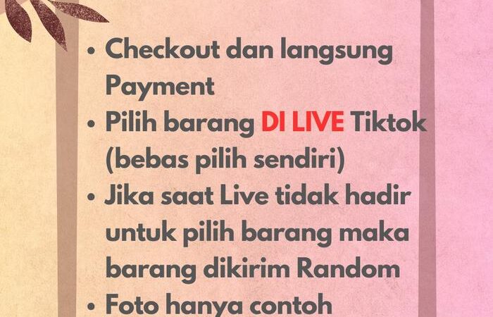 Setiap minggu selalu hadir koleksi dan barang terbaru! Proses belanja mudah: Klik keranjang kuning, checkout sesuai keinginan, dan lakukan pembayaran. Anda juga bisa memilih barang langsung saat Live untuk pengalaman berbelanja yang lebih interaktif.