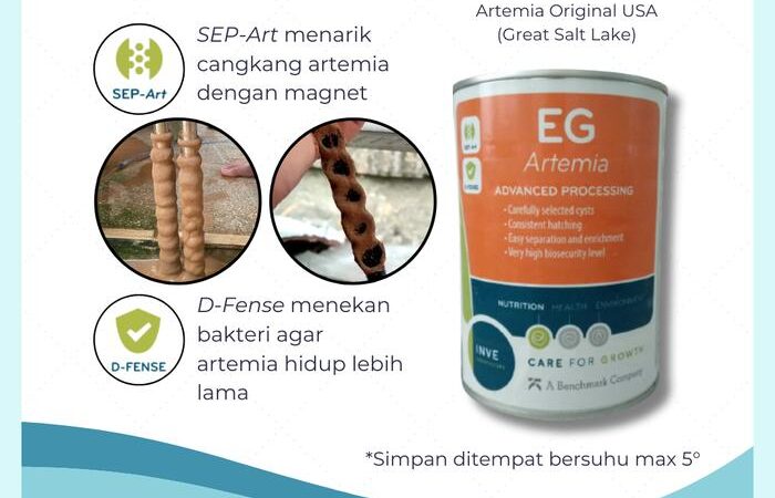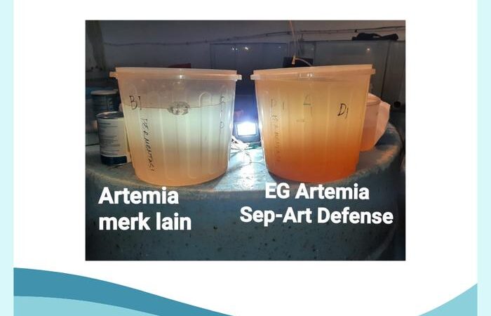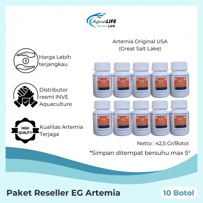 Dapatkan keuntungan maksimal dengan paket reseller praktis berisi 10 kemasan EG Artemia Sep-Art Defense. Solusi penetasan artemia higienis dan efisien untuk bisnis akuakultur dan hobiis ikan hias yang serius.