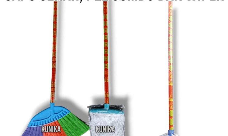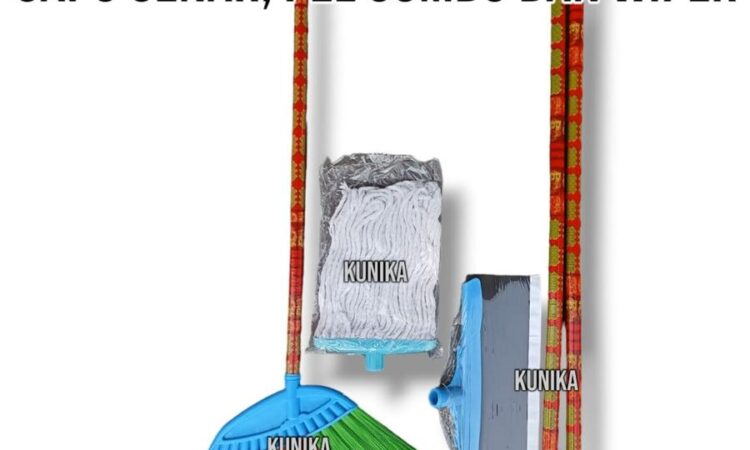 | Kuantitas | 1 kemasan berisi 3 alat kebersihan (sapu, pel, wiper) + 1 gagang plastik. |