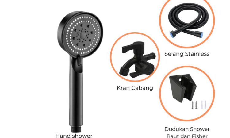 | Selang Shower | Panjang 1,5 meter, material PVC fleksibel + lapisan stainless steel | Jangkau area mandi dengan mudah, tahan lama, dan anti-twist. |