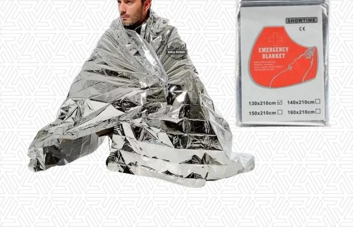 • Emergency Blanket: Selimut darurat yang terbuat dari material metalized PET (polyethylene terephthalate). Fungsinya adalah memantulkan panas tubuh kembali ke pengguna untuk mempertahankan suhu inti tubuh.