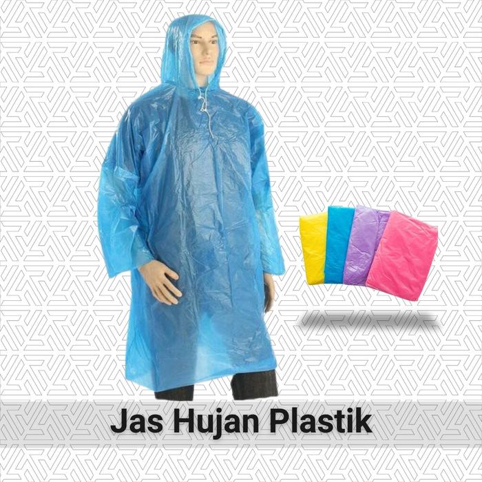Jas Hujan PoncoTerbuat dari material plastik tebal dan anti-air. Desainnya luas, dapat menutupi tubuh dan tas. Warna dikirim secara acak.