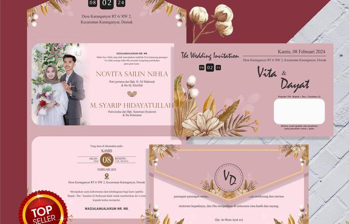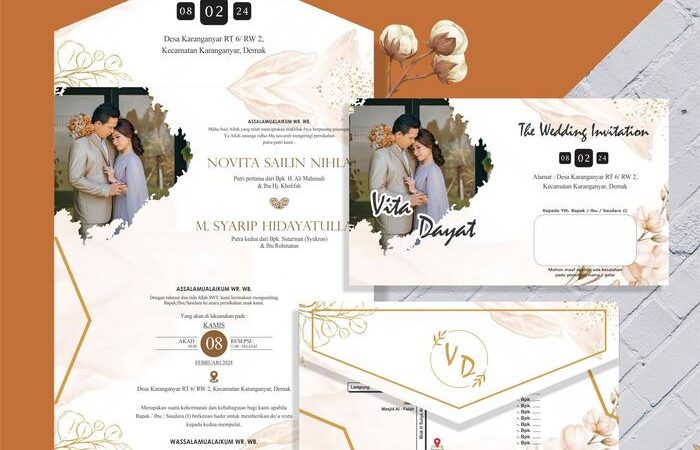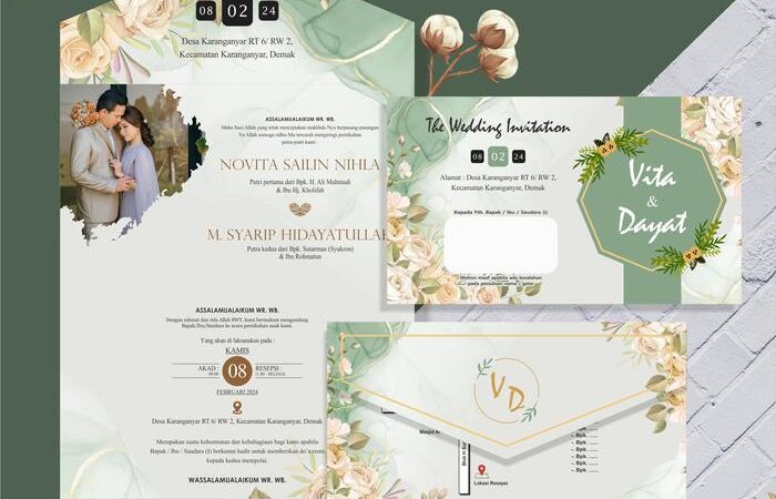 - Semi Amplop: Desain undangan yang memiliki lipatan mirip amplop, sehingga tidak memerlukan amplop tambahan untuk pengiriman.
