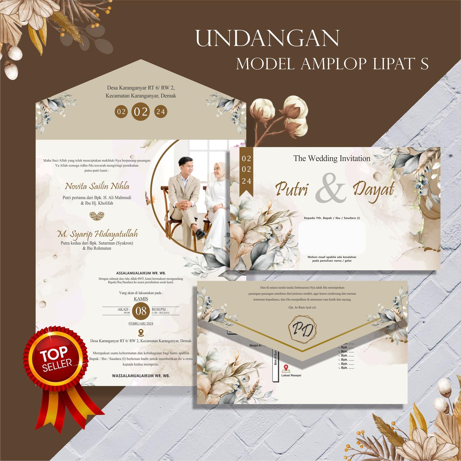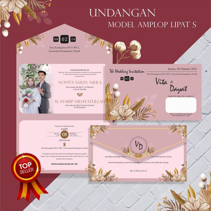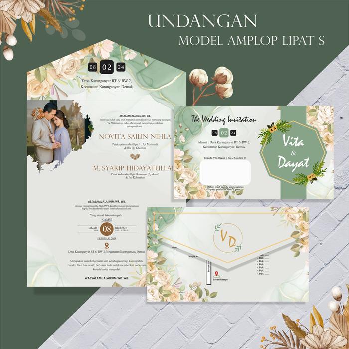 - Semi Amplop: Desain undangan yang memiliki lipatan mirip amplop, sehingga tidak memerlukan amplop tambahan untuk pengiriman.