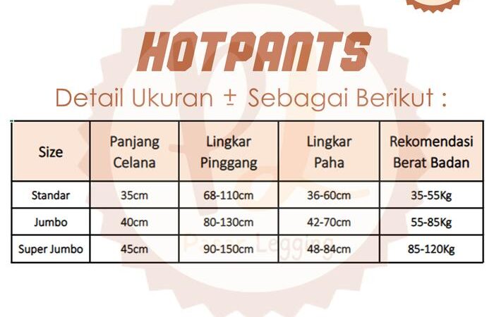 | Panjang Celana (cm) | ± 35 | ± 40 | ± 45 |