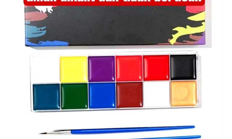 - Isi Paket: 1 Palet Cat (12 warna) + 2 Kuas
