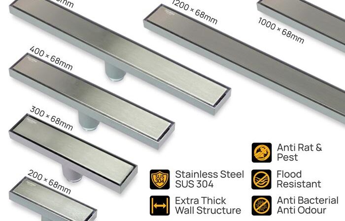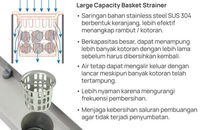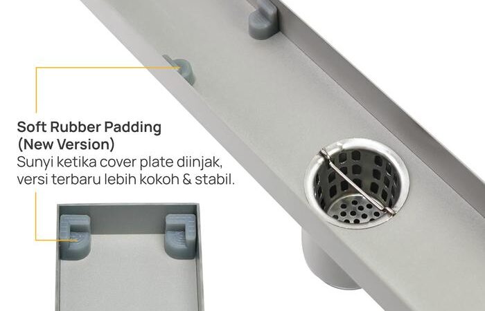 - Tile Insert: Sistem yang memungkinkan penutup drainase diisi dengan material seperti keramik agar sesuai dengan lantai.