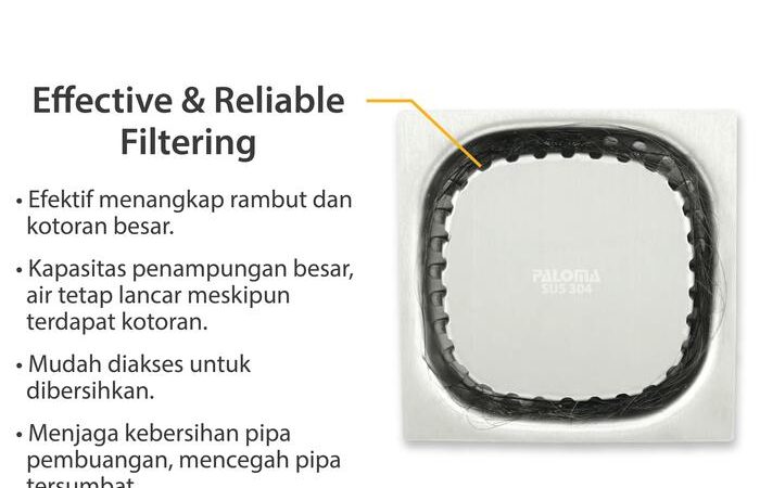 | Fitur Keamanan | Anti hama (tikus, kecoa, kelabang) dan anti bau dari pipa pembuangan. |