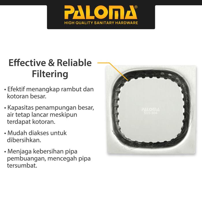 | Fitur Keamanan | Anti hama (tikus, kecoa, kelabang) dan anti bau dari pipa pembuangan. |