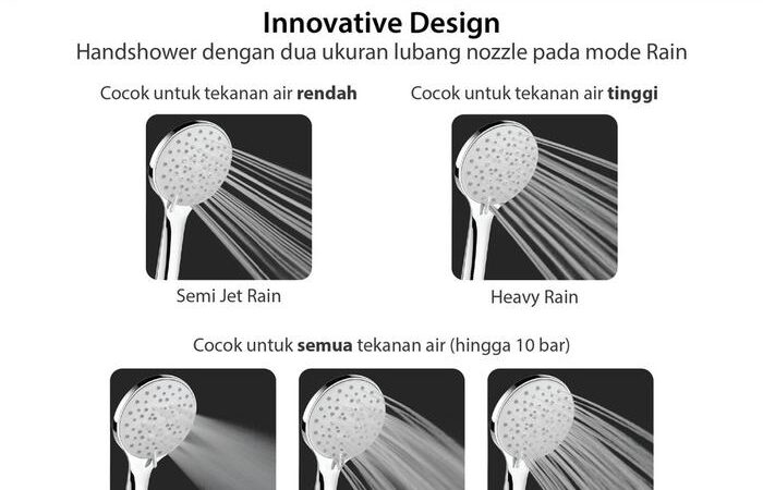 | Mode Semburan | 5 Pilihan: Sprinkle Jet, Heavy Rain, Sprinkle Jet + Heavy Rain, Semi Jet Rain, Heavy Rain + Semi Jet Rain |