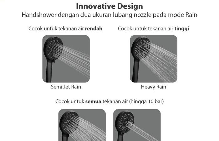 | Mode Penyemprotan | 4 pilihan mode: Heavy Rain (hujan deras), Semi Jet Rain (hujan semi jet), Heavy Rain + Semi Jet Rain (kombinasi), dan Cluster Jet (semprotan terkonsentrasi). |
