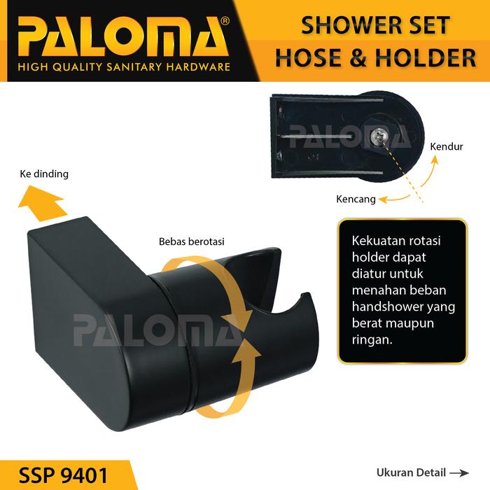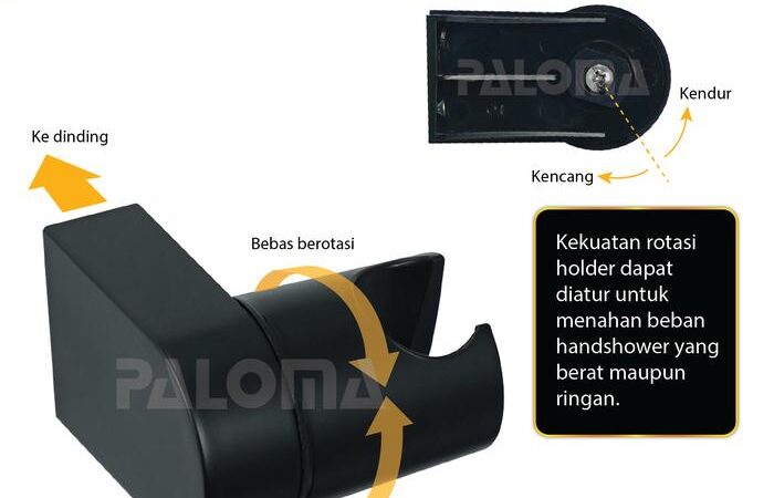 | Fitur Tambahan | Dilengkapi saringan partikel kasar untuk mencegah penyumbatan. Holder dapat diputar vertikal dan sudah termasuk baut serta fischer untuk pemasangan di dinding. |