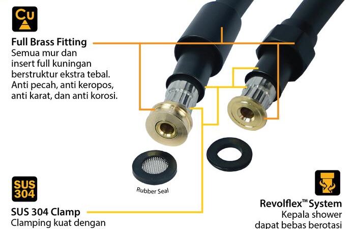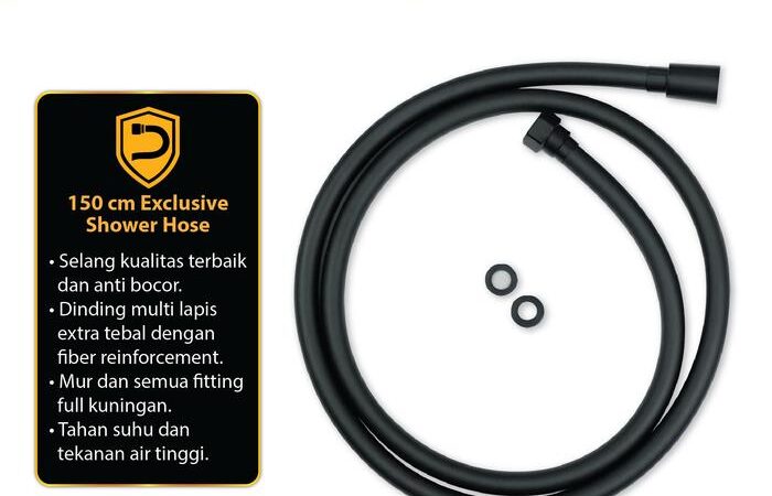 | Selang Shower | Panjang 150 cm dengan struktur multi lapis ekstra tebal dan fiber reinforcement. Permukaan halus dan mudah dibersihkan. |