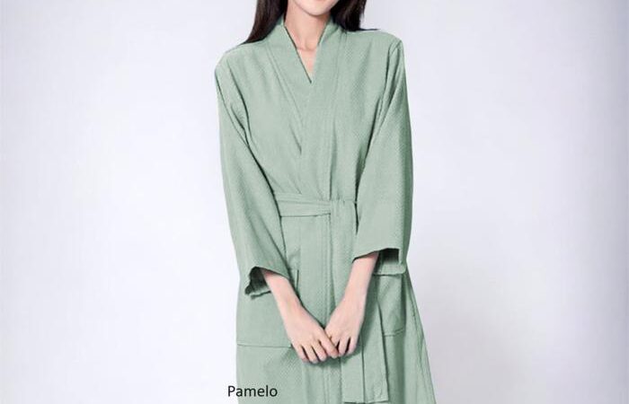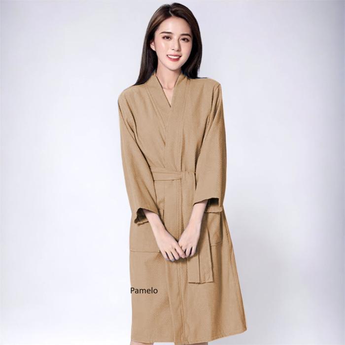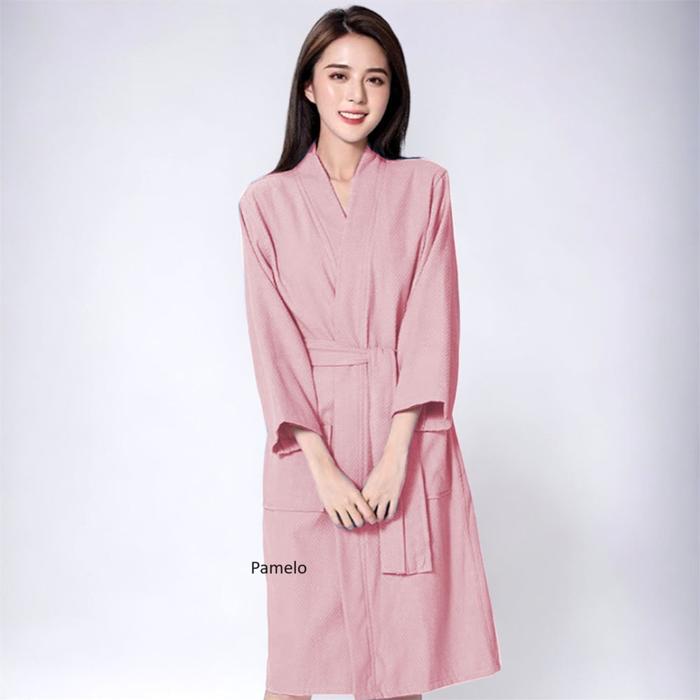 | Fitur | Desain kimono praktis, cocok untuk mandi, lounging, atau dipakai sebagai piyama. |