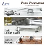 Solusi praktis untuk penyajian makanan elegan dalam acara rumah, pesta, catering, atau bisnis kuliner. Wadah stainless steel berkualitas tinggi dengan tutup kaca transparan untuk tampilan menarik dan higienis.