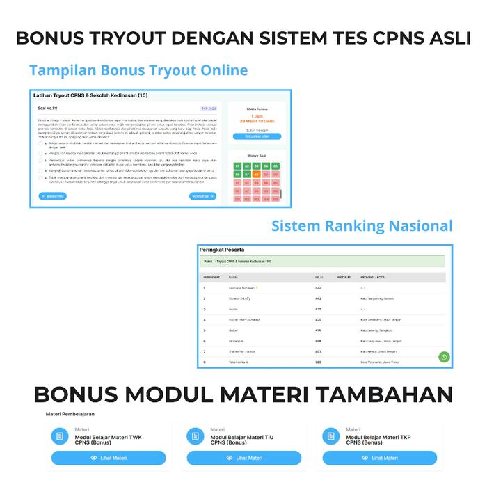 - Try Out Online: Platform latihan soal dengan sistem nilai dan ranking nasional.