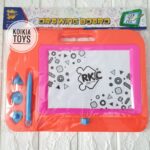 Dengan papan ini, anak dapat belajar menulis, menggambar, dan berhitung menggunakan pena magnet dan angka/huruf magnet. Mainan ini melatih motorik halus, koordinasi mata-tangan, serta mengasah imajinasi dan kemampuan kognitif anak sejak dini.