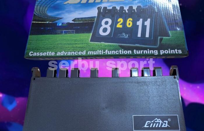 | Fitur Utama | – Model lipat, mudah dibawa dan disimpan – Kapasitas skor: 0–31 – Ronde/babak: 0–7 |