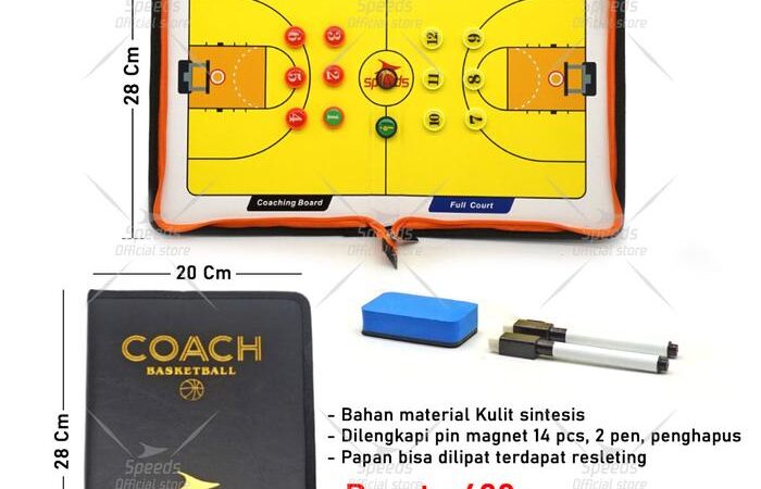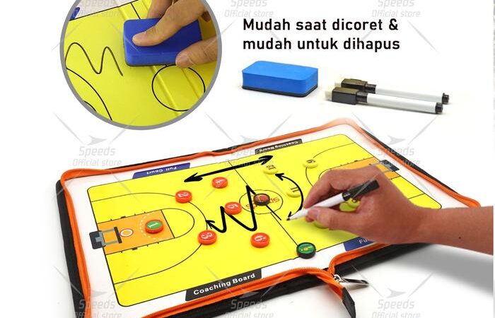 Tingkatkan performa tim Anda dengan papan strategi taktik 4-in-1 yang praktis dan lengkap. Alat ini merupakan perlengkapan wajib bagi pelatih basket, voli, futsal, dan sepak bola untuk merencanakan formasi, menyusun strategi menyerang, serta menganalisis pola pertahanan dengan mudah.