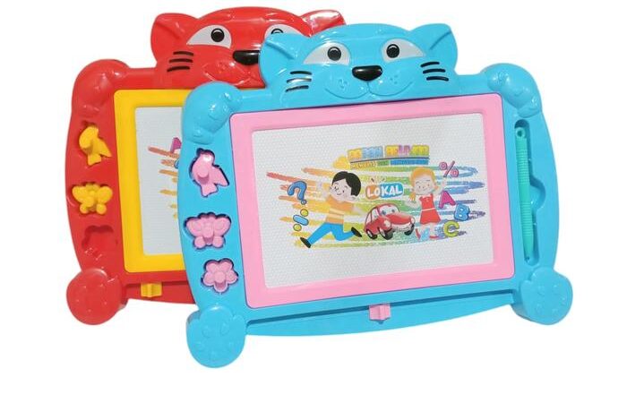 - Papan Tulis Magnet: Sebuah papan yang memanfaatkan daya magnet untuk menempelkan benda (seperti angka atau huruf) atau sebagai media untuk menulis menggunakan pena khusus yang mengandung serbuk magnet.