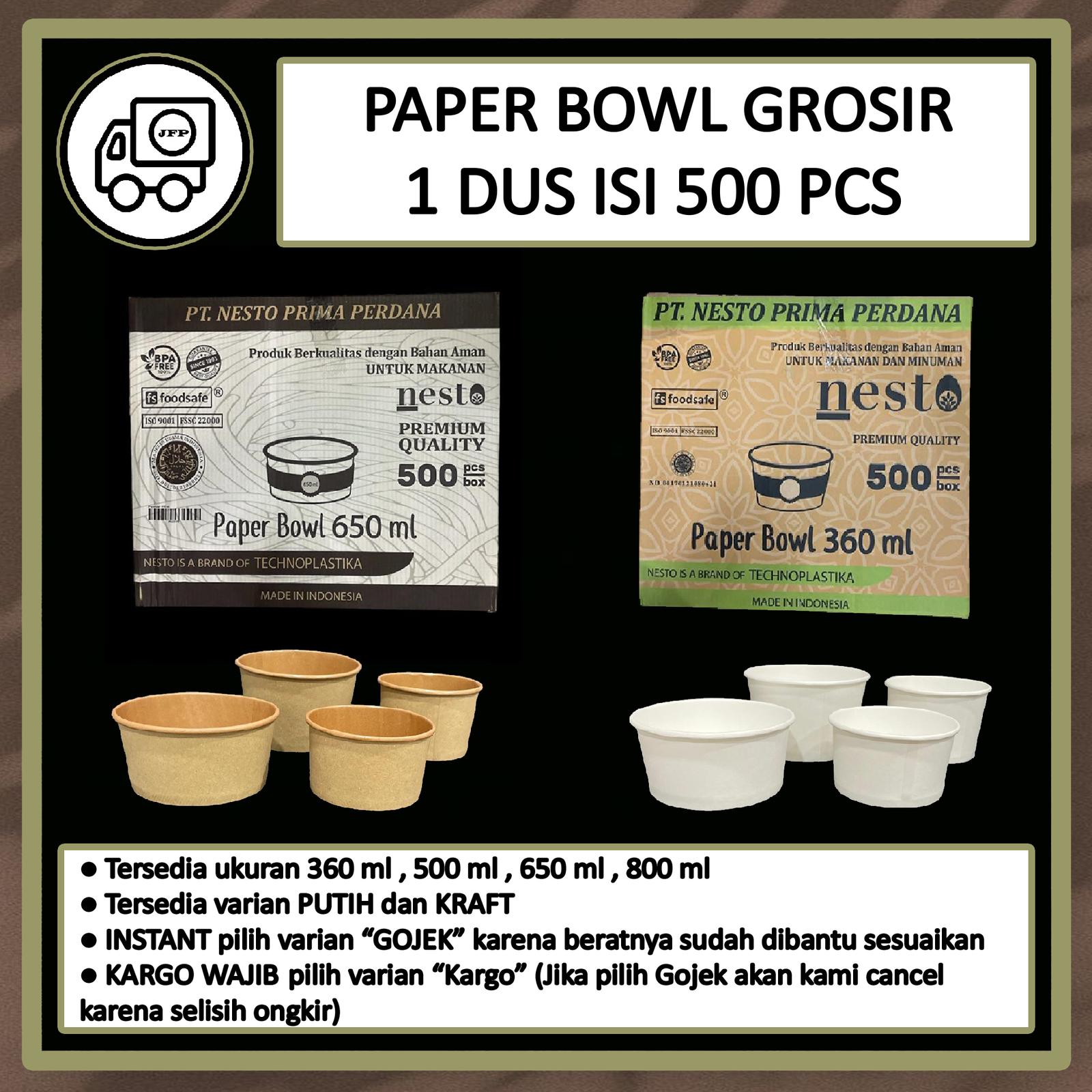 Dapatkan Paper Bowl berkualitas tinggi dengan harga grosir per dus. Setiap dus berisi 500 pcs bowl tanpa tutup. Tersedia dalam berbagai ukuran dan warna untuk memenuhi segala kebutuhan bisnis Anda.