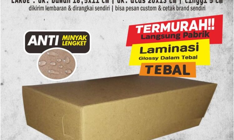 | Bahan | Eco Craft Paper Laminated PE 290 gsm (Foodgrade, Halal, Anti Minyak/Lengket) |