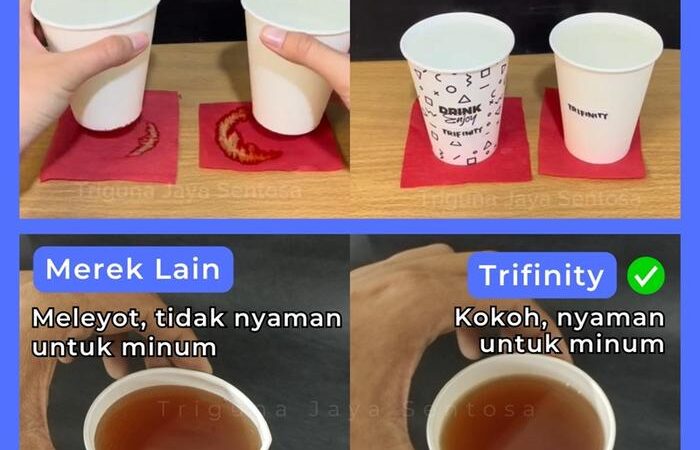 Dapatkan paper cup tebal dan berkualitas tinggi dari Trifinity JSP untuk mendukung bisnis minuman Anda. Tersedia berbagai ukuran mulai dari 4oz (120ml), 8oz (240ml), hingga 22oz (660ml). Setiap cup didesain dengan material food grade berwarna putih polos, memiliki dasar yang kokoh anti bocor, dan dijamin rapat dengan tutupnya.