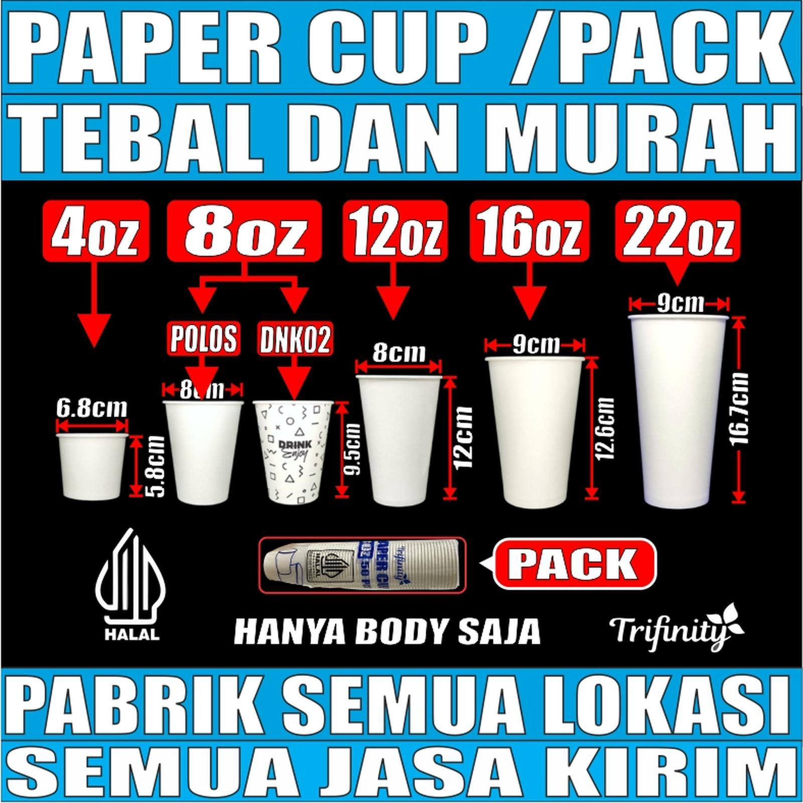 | 8oz / 240ml | 210 | 50 pcs | 5.4 | SPE | Merk Trifinity, Polos |