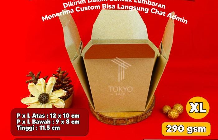 Dapatkan kemasan makanan praktis dan ramah lingkungan dari Tokyo Pack untuk bisnis F&B Anda. Paper Food Pail kami terbuat dari material kertas food grade yang telah dilapisi laminasi anti air dan minyak, sehingga aman untuk makanan berkuah dan berminyak. Desainnya mudah dirakit, lebih kokoh, dan eco-friendly.
