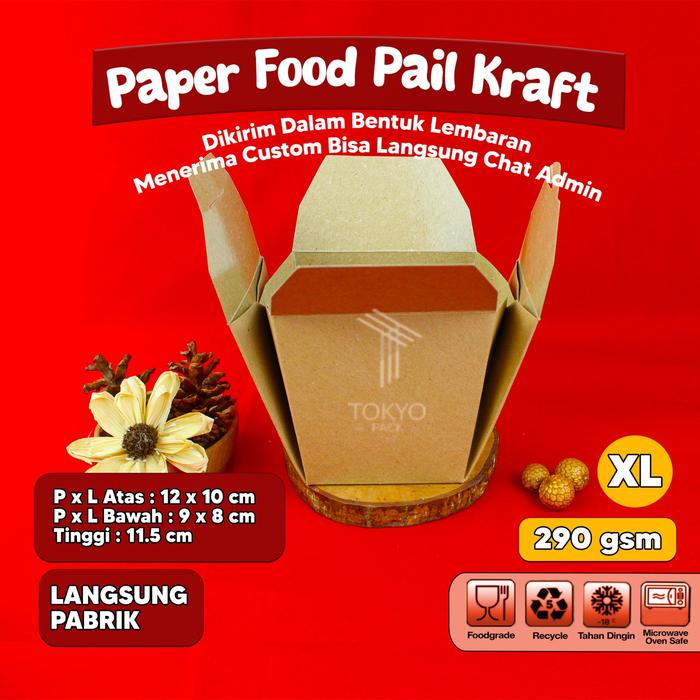 Dapatkan kemasan makanan praktis dan ramah lingkungan dari Tokyo Pack untuk bisnis F&B Anda. Paper Food Pail kami terbuat dari material kertas food grade yang telah dilapisi laminasi anti air dan minyak, sehingga aman untuk makanan berkuah dan berminyak. Desainnya mudah dirakit, lebih kokoh, dan eco-friendly.