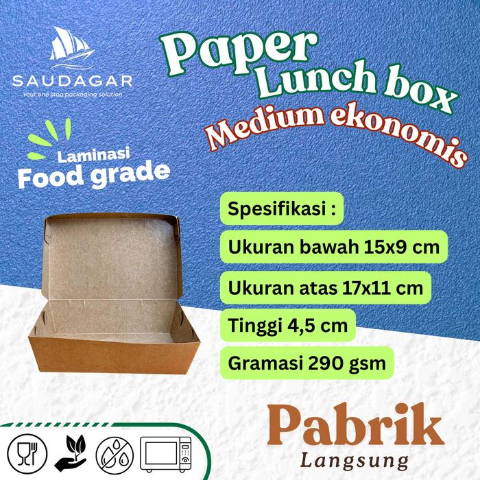 Temukan solusi kemasan makanan yang praktis, aman, dan ramah lingkungan dengan Paper Lunch Box kami. Terbuat dari bahan Kraft laminasi berkualitas tinggi, kotak makan ini dirancang untuk memenuhi berbagai kebutuhan bisnis kuliner Anda, dari restoran besar hingga usaha rumahan.