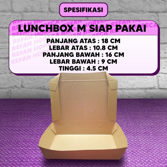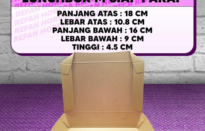Tampilkan gaya dan kesan premium untuk bisnis kuliner Anda dengan Paper Lunch Box berkualitas tinggi kami. Kemasan ini terbuat dari bahan Kraft Full Laminasi yang kuat, tahan minyak, dan sudah pasti food grade, sehingga aman untuk langsung menyajikan makanan hangat maupun dingin. Keunggulan utamanya adalah ready to use; Anda tidak perlu repot merakitnya lagi, menghemat waktu dan tenaga saat pesanan sedang ramai.