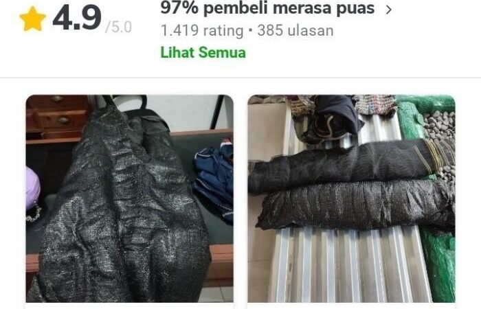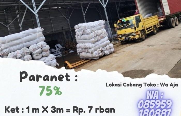 | Fungsi Utama | – Shading house (reduksi cahaya 75%) – Peneduh tanaman/konstruksi – Jaring pengaman bangunan |
