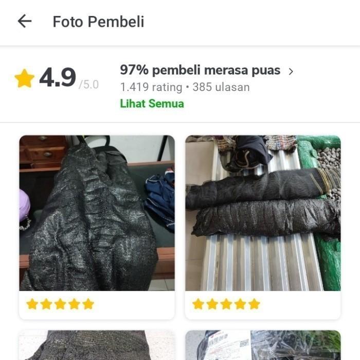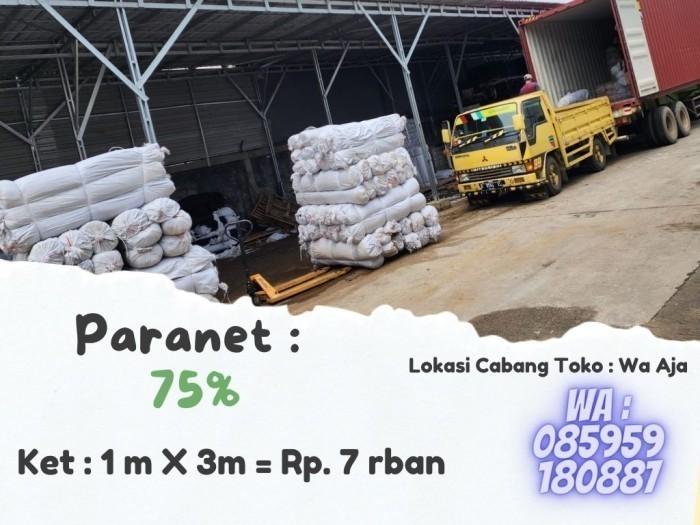 | Fungsi Utama | – Shading house (reduksi cahaya 75%) – Peneduh tanaman/konstruksi – Jaring pengaman bangunan |