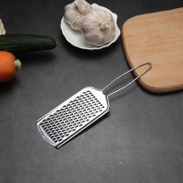 Dibuat dari material Stainless Steel pilihan yang anti karat, sangat higienis, dan mudah dibersihkan. Desainnya yang pipih memastikan kestabilan saat digunakan dan menghasilkan parutan yang konsisten. Dilengkapi dengan gagang yang memiliki lubang, memudahkan Anda untuk menyimpannya dengan rapi di dapur.