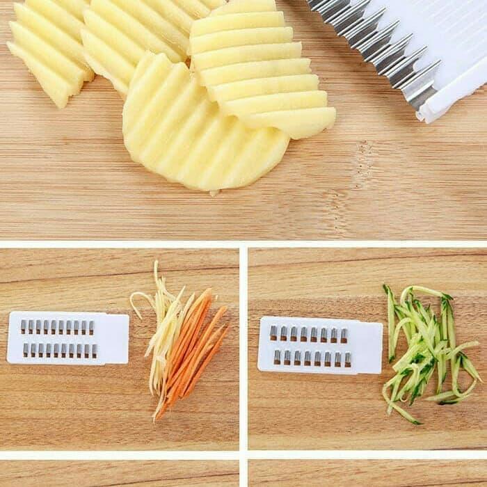 Ubah dapur Anda menjadi lebih efisien dengan alat pemotong inovatif yang dirancang untuk memotong buah dan sayuran menjadi berbagai bentuk menarik, seperti irisan persegi panjang, pola bunga, atau gelombang. Alat ini sangat membantu mempercepat penyiapan bahan masakan, menghemat waktu, dan menyajikan tampilan hidangan yang lebih estetis serta profesional.